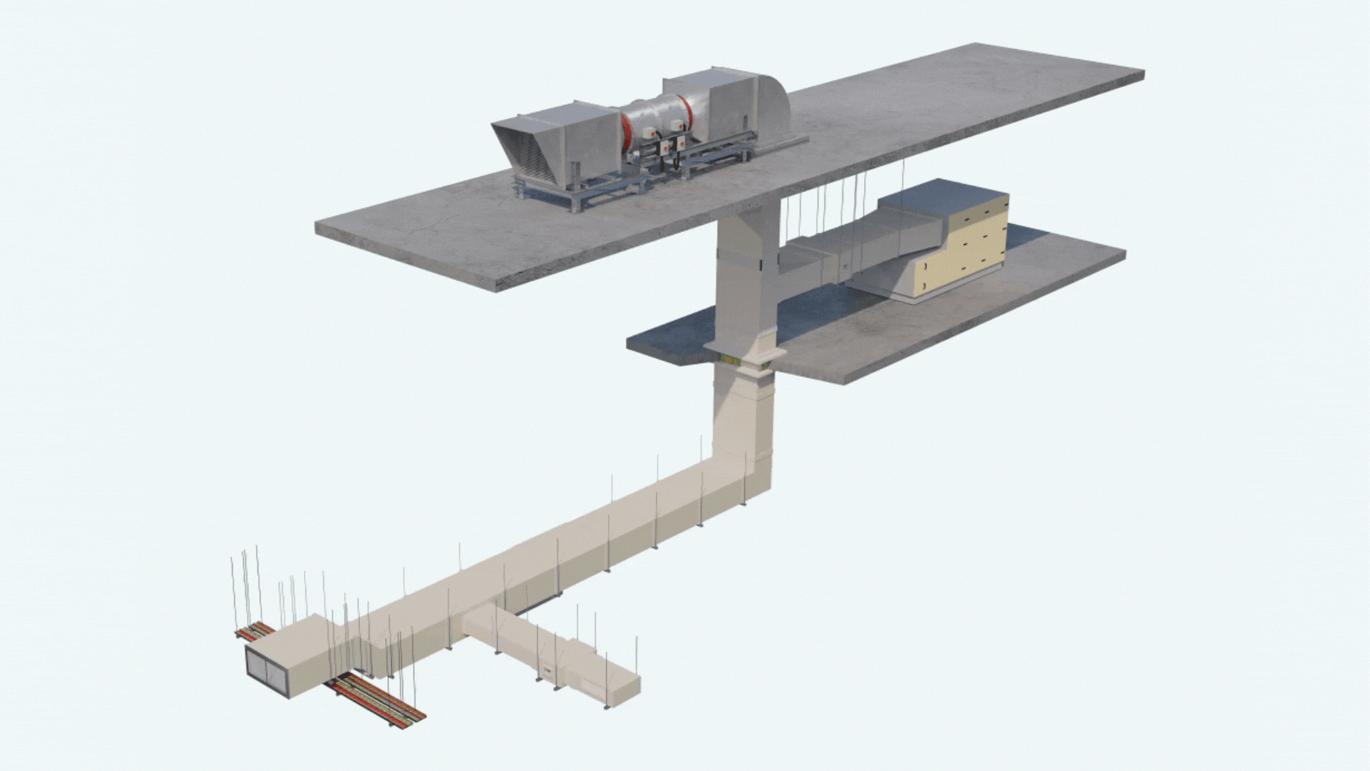 Si la conception de votre bâtiment nécessite un système de désenfumage, nous vous conseillons d’opter pour COMBI-PROMADUCT®. Ce conduit de désenfumage innovant fonctionne également comme conduit de ventilation de confort. Dans des conditions quotidiennes normales, ce conduit de ventilation peut réduire jusqu'à 90 % la consommation d’énergie du ventilateur. Regardez la video et découvrez le système COMBI-PROMADUCT®