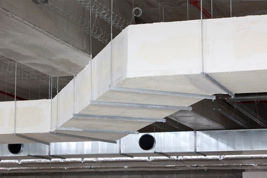 PROMATECT®-L500 bliver brugt til ventilationskanalsystemerne og røgudsugningskanaler. De nødvendige brandbeskyttelseskrav oversteg standardstørrelser (op til 3m x 3m). Disse plader bruges også til lukkeanlæg af kabelsystemer og brandstabilitet i metalvinduer.