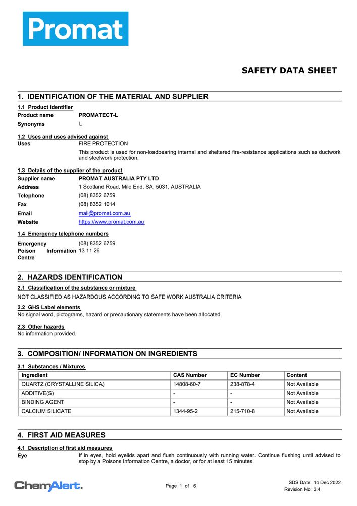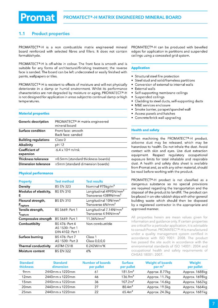 PROMATECT®-H Datasheet Product Brochure PROMATECT®-H Datasheet PROMATECT-H Mechanical and Physical Properties