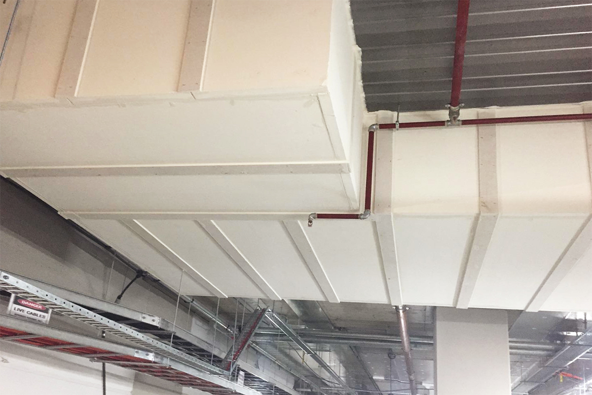 Over 500m2 of PROMATECT®-L500 in a 2, 3 and 4 sided General E&M Service Enclosures have been installed on scheduled, a successful team work between the two companies Arc Plaster and Design Inc Architects.