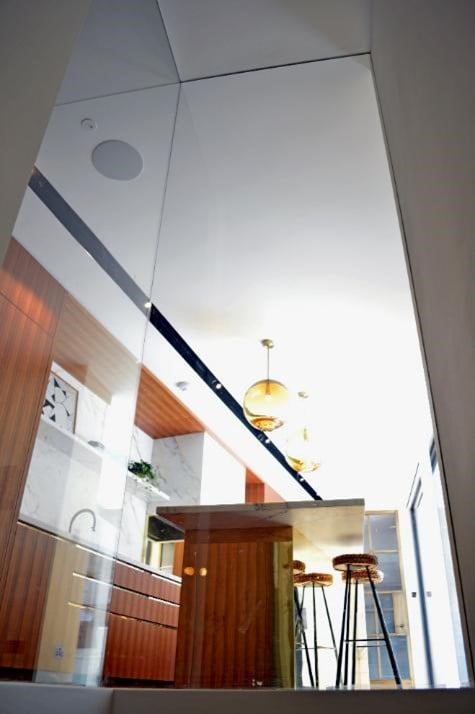 To maintain fire safety within the property, an elegant floor-to-ceiling fire resistant glazing element was created using Celare complete with a butt-jointed corner. This was specified with an EI30 fire rating and also allowed for a high level of natural light to be introduced into a stairway and downstairs hallway via the kitchen.