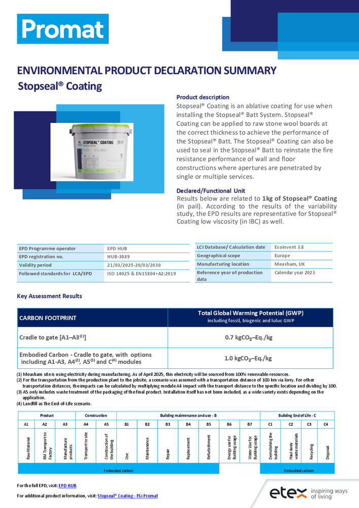 PROMATECT-MST, PROMATECT-MT, PROMATECT-MLT, Promarine 450T and 640T, Vermiculux T, Supalux M1, Promasil 1000L, 1100 Super - EPD Summary sheet