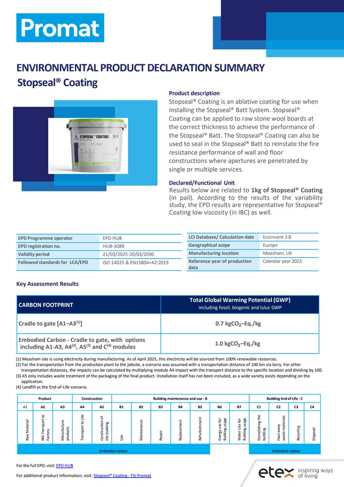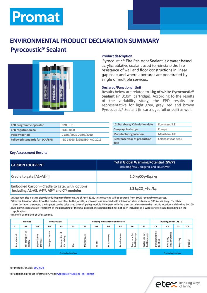 EPD Summary sheet-PT-MST, MT, MLT Promarine 450T and 640T, Vermiculux T, Supalux M1, Promasil 1000L, 1100 Super