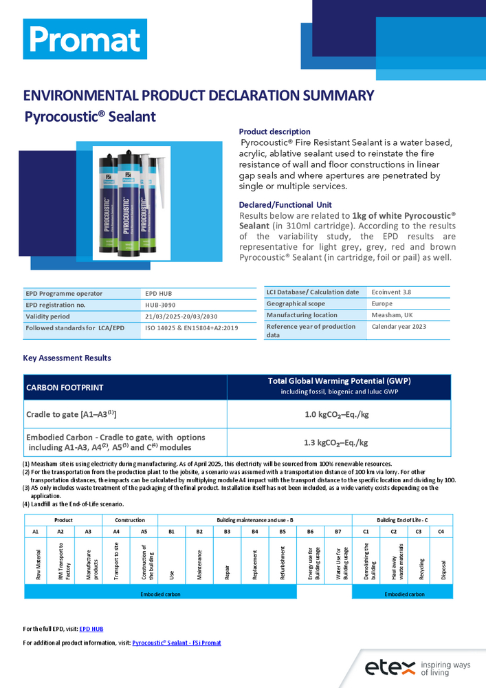 EPD Summary sheet-PT-MST, MT, MLT Promarine 450T and 640T, Vermiculux T, Supalux M1, Promasil 1000L, 1100 Super