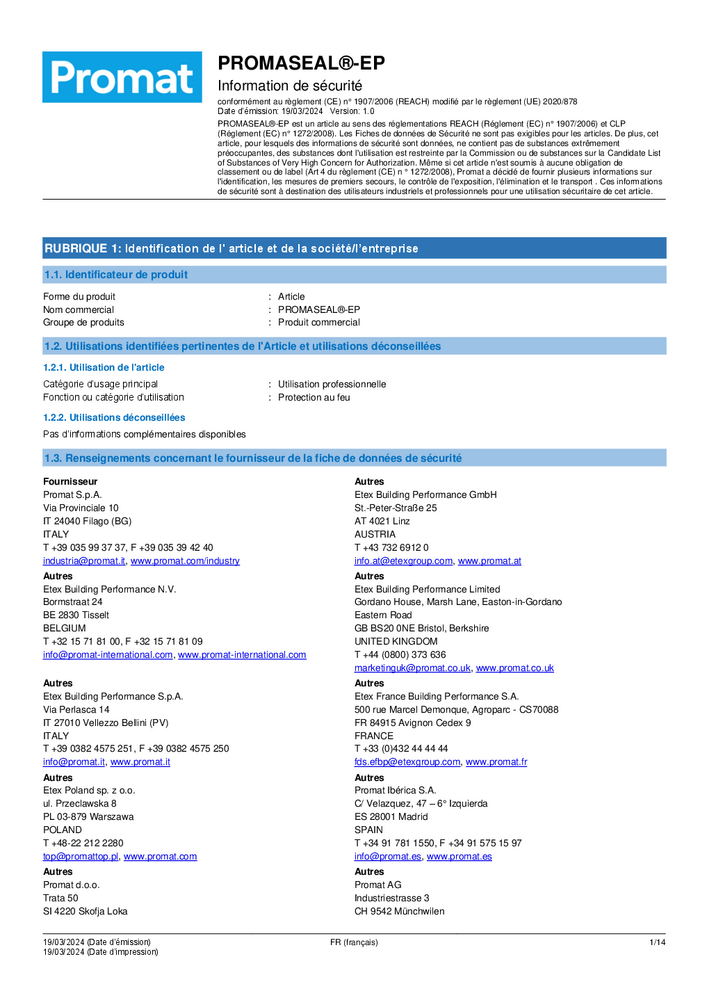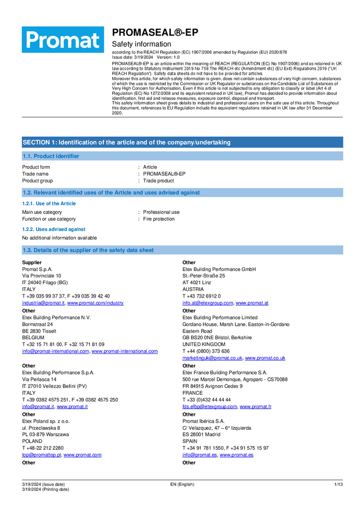 EPD summary sheet-PROMASEAL®_LX__LXP__LXSK__LXPSK