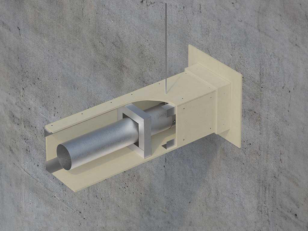- Assembling an Utility pipe enclosure with a layer of PROMINA®-60 board, 9mm thick, to form an encasement by securing the board to the steel angle at corner joints and to the channel collar frame at the board joints using screws.