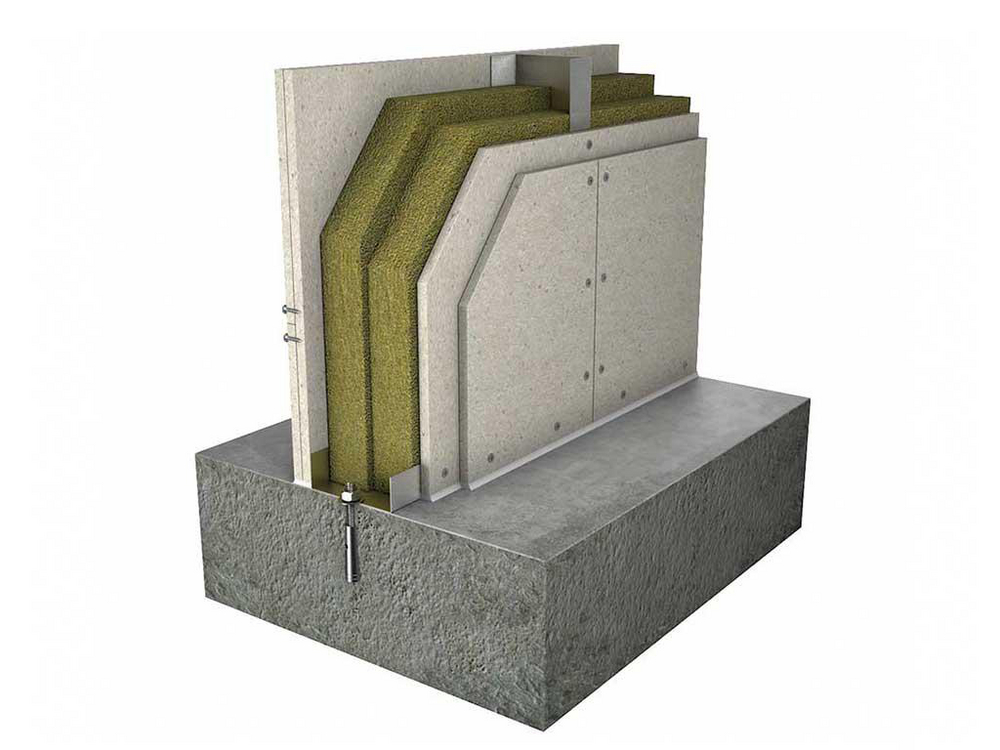 - Assembling of a two layers of PROMINA®-60 board, 2 x 9mm thick, screw-fixed on both steel channel flange, with a layer of mineral wool cavity laid in between the framing for a total system thickness of 136mm.
