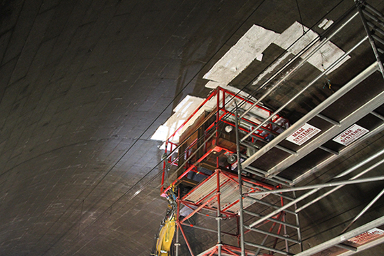 The PROMATECT®-T boards are 17mm thick and will protect the concrete tunnel wall against fire for a period of two hours and withstand temperatures up to 1500°C (according to the Rijkswaterstaat curve). This means that boards will withstand temperatures of 1350°C on the fire side. To avoid that the concrete bursts and explodes, the temperature between the concrete wall and boards can not exceed 250°C. The test results for PROMATECT®-T in the laboratory were spot on. To ensure that the same standards were met in the tunnel, Promat conducted a fire test with their system inside the tunnel. We were happy to say, the PROMATECT®-T boards passed the test without any problems.