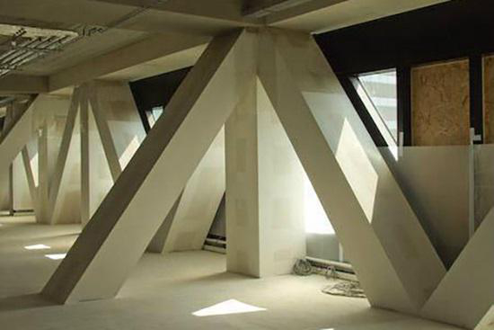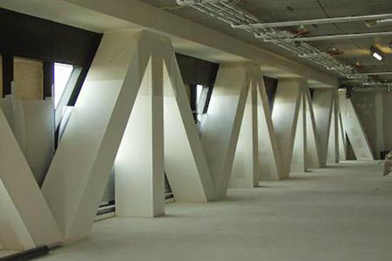 A building where living, working and shopping are combined. Extensively used by many people for many uses. The heavy supporting structures are protected against fire by Promat materials.