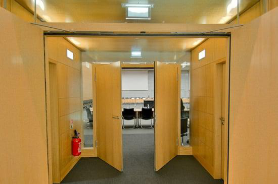 The glass partitions with Promat®-SYSTEMGLAS are an ideal method to favor a modern architecture, preserving the quality and promote fire safety. Thus, 120m² glass partitions with Promat® SYSTEMGLAS allowed to compartmentalize the canteen, providing a feeling of unlimited perspective and an amazing ambient light while protecting agains fire. All the rooms of the headquarters combined have more than 300m² of Promat®-SYSTEMGLAS, framework for 50 fire doors with a ½ hour of fire resistance, 36 full glass doors, single and double leaf, 21 mm thick, with a Hoba® wood frame fire ½ hour fire resistant.