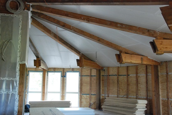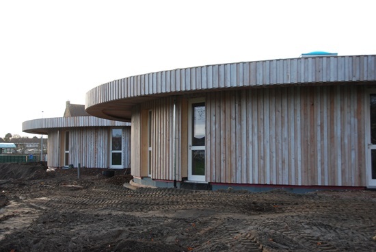The whole structure is made out of wood, the outside walls and the roof are insulated with ecological insulation, 4 double glazed walls are installed. A reed bed provides purification and reusability of wastewater. The fire safety gets an important place in the new building: the standing walls and ceilings, that are made with a wooden structure are protected by PROMATECT®-100 of 10 mm and 15 mm boards. This ensures a fire resistance of EI 30 and E I60. In order to allow a perfect finish of the walls and the ceiling, they chose to use PROMATECT®-100 boards with 2 and 4 bevelled edges. These can be plastered smoothly with Promat® Ready to use joint filler.