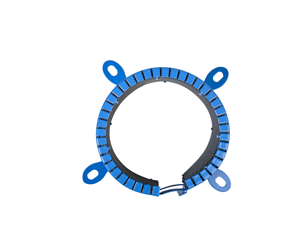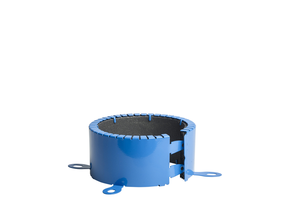 Sistema de sellado de paso de tuberías combustibles compuesto de una carcasa metálica prefabricada de 60 mm de alto que incorpora un material intumescente expansivo.