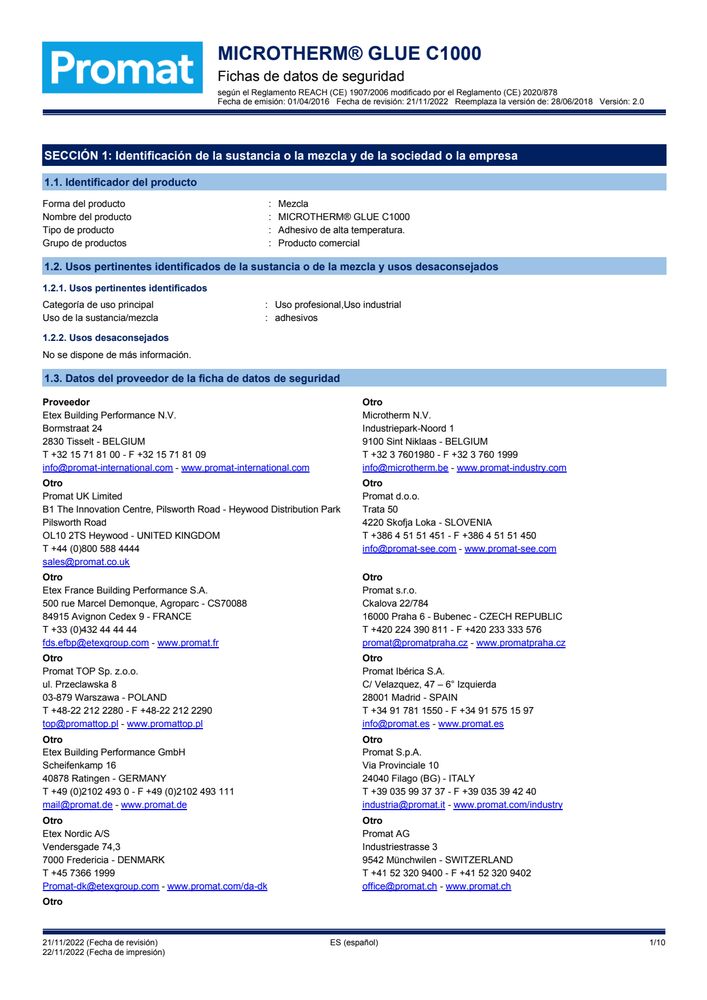 Ficha de seguridad ALSIFLEX1600 PROMAFELT1600 PROMAFORM1600 1700175018001850