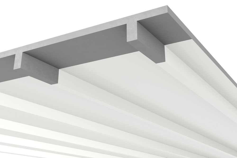 - Application sur dalles planes, poutres rectangulaires, murs exposés sur une face uniquement
