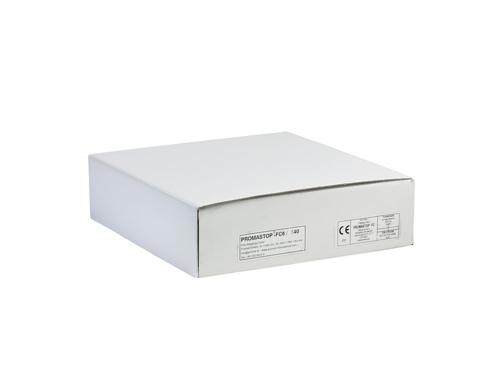 PROMASTOP®-FC6 est un manchon résistant au feu en acier poudré de couleur bleue avec une hauteur de 60 mm, rempli de plusieurs couches d’un produit foisonnant à base de graphite. En cas d’élévation de la température, le produit foisonnant forme une mousse qui sectionne la conduite en matière synthétique et obture ainsi l’ouverture. Le manchon résistant au feu PROMASTOP®-FC est destiné à l’obturation résistante au feu de traversées de dalles et murs massifs, cloisons et planchers en CLT, cloisons légères, cloisons de doublage, panneaux sandwich et plafonds suspendus par des conduites monocouches et multicouches non-isolées en matière synthétique, ainsi que de traversées de dalles et murs massifs et de cloisons légères par des conduites monocouches et multicouches en matière synthétique avec isolation combustible. PROMASTOP®-FC est disponible en plusieurs diamètres et rétablit la résistance au feu du compartiment de EI 30 jusqu'à EI 240 (U/C of U/U), en fonction de l'application. Les manchons permettent une installation facile et rapide en sont fixés à l'aide des pattes de fixation fournies dans l'emballage et de moyens de fixation adéquats. Ce manchon résistant au feu a été testé dans différentes constructions suivant la norme européenne EN 1366-3:2009 et peut être appliqué en combinaison avec le panneau en laine de roche préenduit PROMASTOP®-CC système.