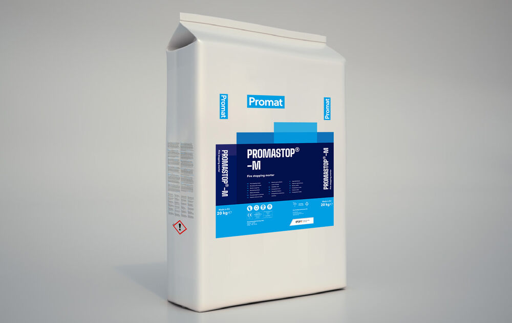 A PROMASTOP®-M cement alapú tűzvédelmi habarcs cső- és kábelátvezetések tűzgátló lezárására (OTSZ szerint: tűzgátló réskitöltő-réslezáró rendszerként). A PROMASTOP®-M tűzgátló lezárás kiegészítő anyagokkal kombinálva EI 120 tűzállósági teljesítményt nyújt falakban és födémekben.