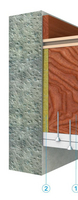 2. Rotswol, volumieke massa min. 45 kg/m³, aangebracht over de volledige ruimte (max. 65 mm) tussen de randbalken en de aanliggende draagconstructie uit steenachtig materiaal - Detail A.