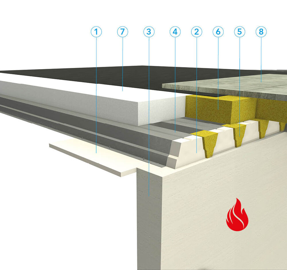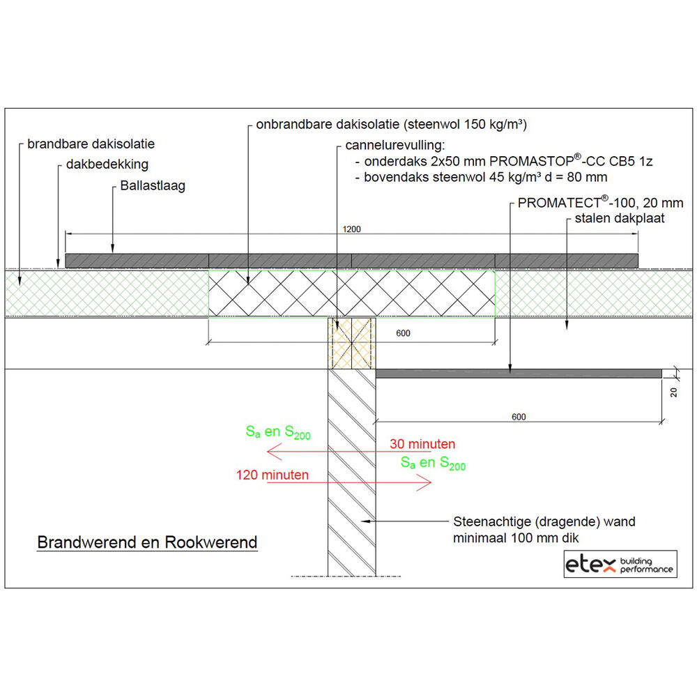 Dakaansluiting brandwerende wand met PROMATECT®-100 - EI 30