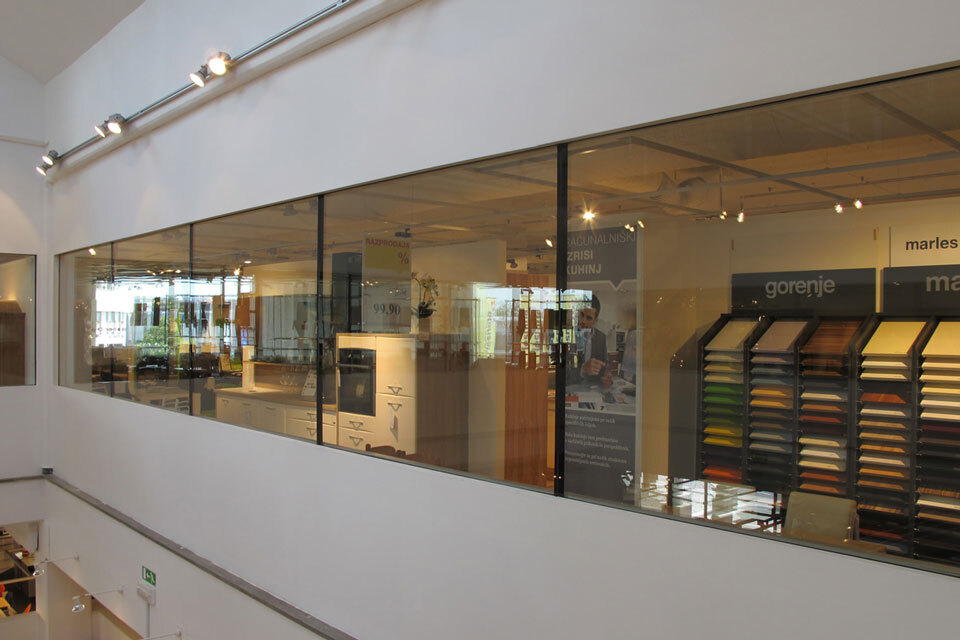 Fiind una dintre cele 12 centre majore de mobilier din Slovenia, clădirea în Koper a fost reconstruită în 2012. În timpul reconstrucției, a apărut nevoia de a diviza în două sectoare. Acest lucru a creat o problemă de lipsă de transparență a spațiului expozițional și de vânzări. Experții Promat au găsit o soluție perfectă prin utilizarea geamurilor antifoc, fără profile, menținând astfel punctul de vedere al întregului etaj. Promat®-SYSTEMGLAS F1 60 s-a aplicat, oferind un sistem fiabil și eficient de protecție împotriva incendiilor optime în combinație cu permeabilitate de lumină și transparență.