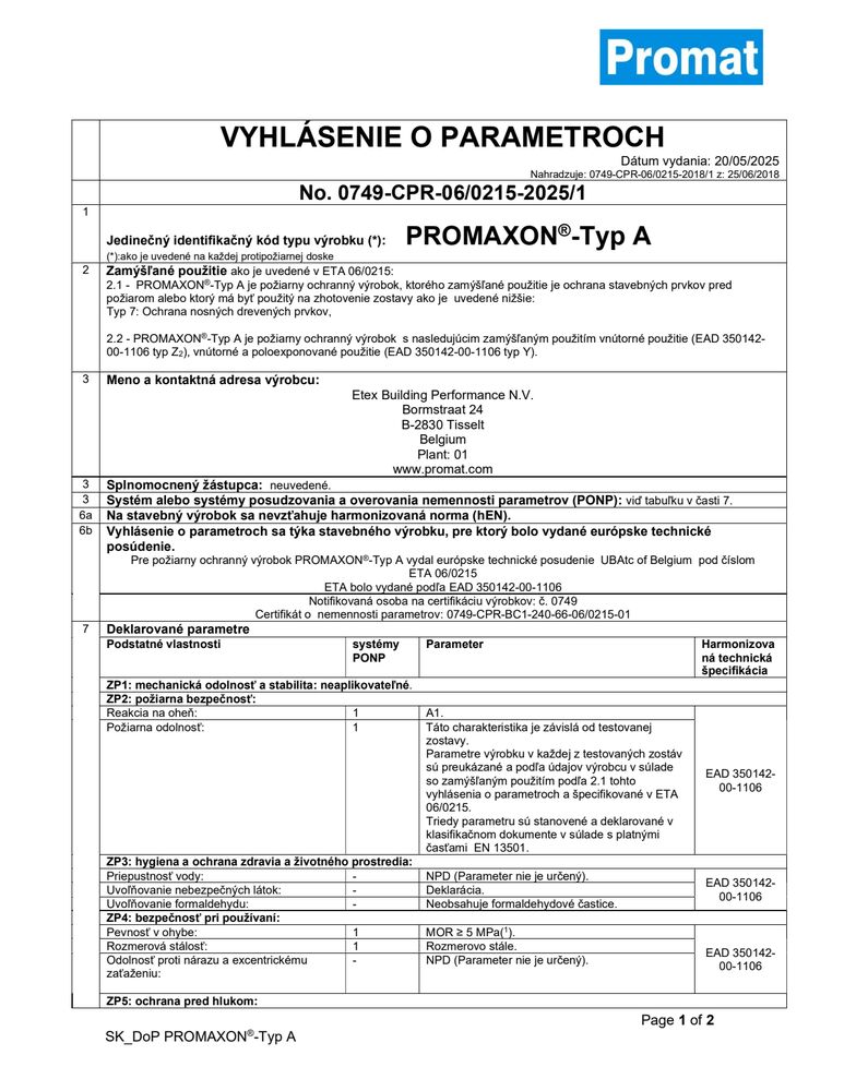 Vyhlásenie o parametroch