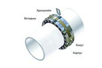 Металевий корпус, що розділяється. Роз'ємний вкладиш із спеціального матеріалу, що розширюється під дією високої температури. Кронштейни кріплення. Фіксуючий хомут. Муфти випускаються у двох типорозмірах, з внутрішнім діаметром 50 мм та 110 мм, поставляються замовнику у зібраному вигляді.